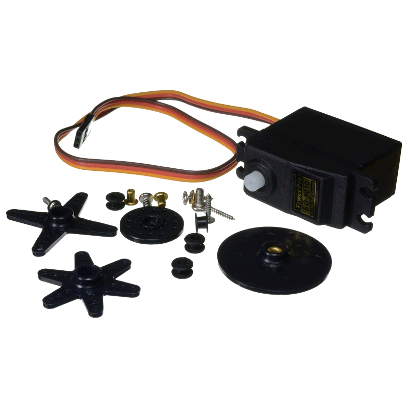 This mini servo motor is designed for radio control system applications. This package includes different types of servo horns and fittings, in order to suit the most exigent applications.