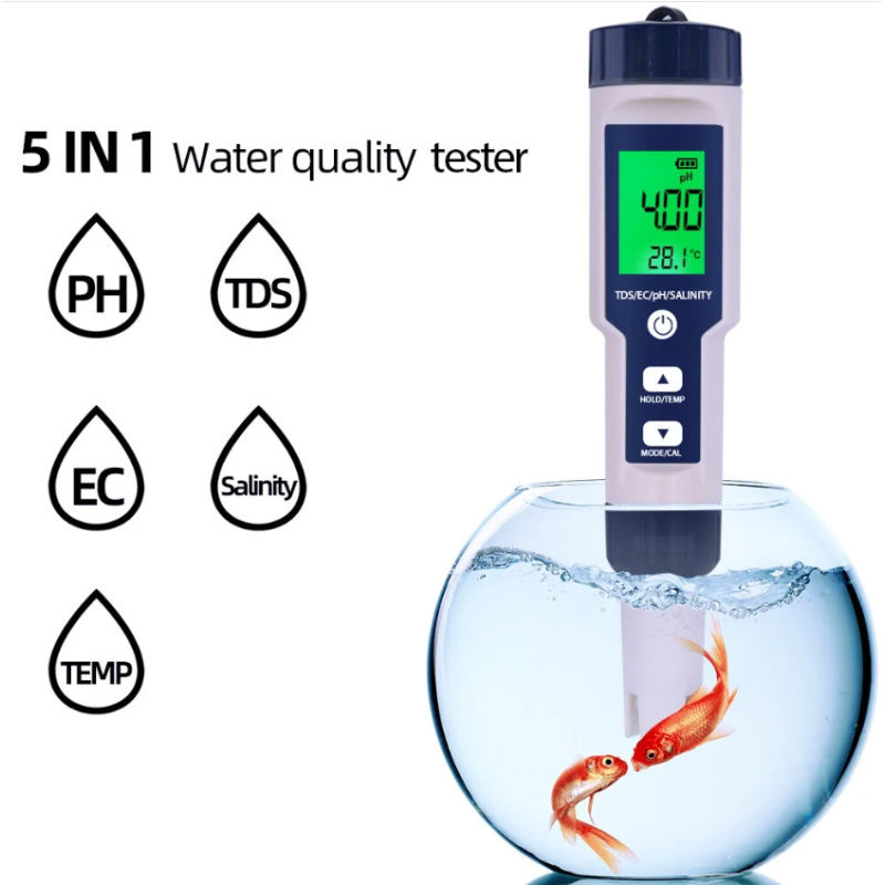 5 in 1 Water Quality Tester PH/TDS/EC/Salinity/Temp Meter with ATC
