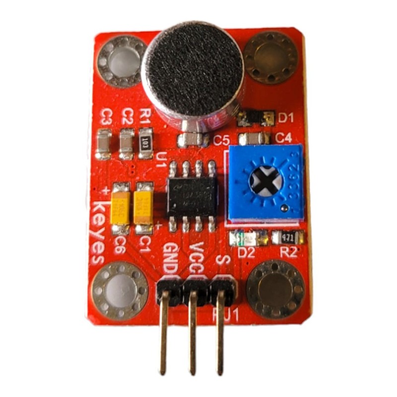 This module is useful for detecting sound intensity in the surroundings. It is suitable for acoustic lights, noise-canceling cameras and similar applications.